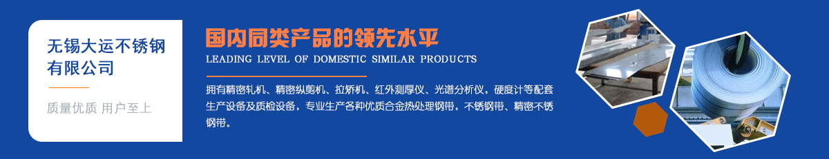 無(wú)錫大運(yùn)不銹鋼有限公司,成立于2004年是一家專(zhuān)業(yè)生產(chǎn)各種優(yōu)質(zhì)合金熱處理鋼帶,不銹鋼帶、精密不銹鋼帶,積累了16年的生產(chǎn)經(jīng)驗(yàn)的生產(chǎn)企業(yè)。本公司擁有精密軋機(jī)、精密縱剪機(jī)、拉矯機(jī)、紅外測(cè)厚儀、光譜分析儀,硬度計(jì)等配套生產(chǎn)設(shè)備及質(zhì)檢設(shè)備,技術(shù)力量雄厚,生產(chǎn)設(shè)備先進(jìn),檢測(cè)設(shè)備完善,產(chǎn)品規(guī)格齊全,是國(guó)內(nèi)率先擁有自主研發(fā)用于生產(chǎn)不銹鋼帶所需要的各項(xiàng)設(shè)備,并經(jīng)過(guò)多次技術(shù)升級(jí)換代,擁有核心的生產(chǎn)技術(shù)專(zhuān)利。 公司產(chǎn)品被廣泛應(yīng)用于高科技產(chǎn)品零部件、化工石油、電子、制管、電纜包帶、醫(yī)療、自行車(chē)、建筑裝璜,廚房用品,調(diào)整墊片,電腦,汽車(chē)配件,五金沖壓件,彈簧彈片等行業(yè)設(shè)備制造,并且提供非標(biāo)深度定制產(chǎn)··· |